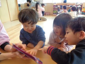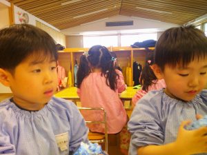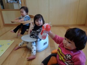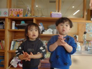 本日は年にじ組さんが卒園旅行のため、つき組・たいよう組だけ・・・。
