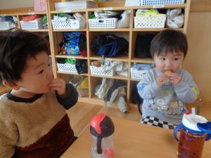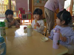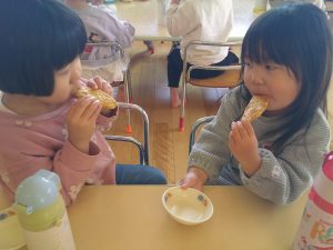 お当番さんがいただきますの挨拶をして、オヤツタイムの始まりです😊