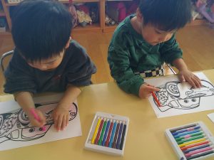 今日の朝の活動は塗り絵や絵本を楽しみました😊