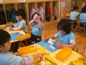 つきさんは久しぶりの創作粘土遊びを楽しみました😊
