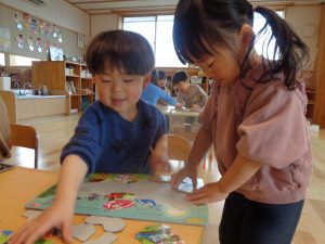 朝の会後は、卓上遊びを楽しみました