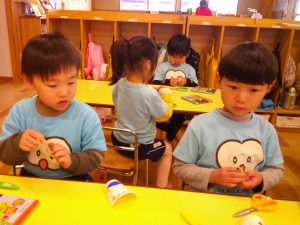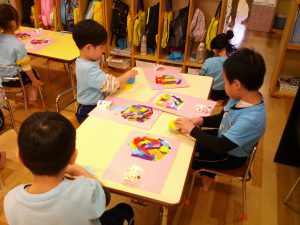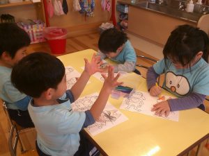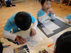 ワークの後は鉛筆をクレヨンに持ち替えて、製作活動に取り組みました🖍