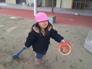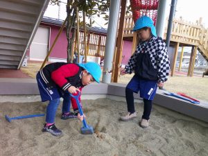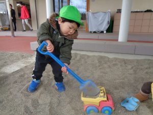 砂場ではトラックにたくさん砂を集めていました🚚