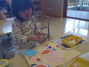 製作ではのりとハサミに挑戦しています✂