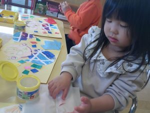 指先で少しずつのりをつけて、丁寧に取り組んでいました💮