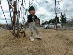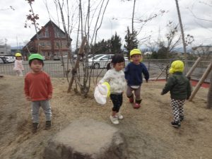 昨日は雨で遊べなかった園庭で遊びました✨