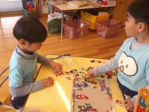 時間をかけてお友だちと相談しながら取り組んでいました🌼