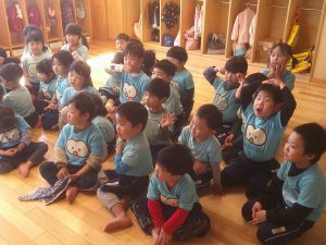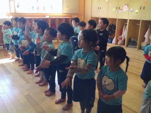 にじぐみさんがお手本になってみんなで帰りの歌やご挨拶をしました(^^♪