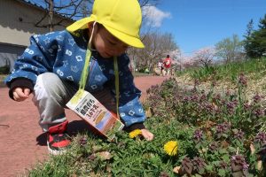 「どんぐり発見!」「タンポポ発見!」 みんなで春探し、楽しかったね!!