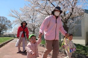 青空が広がった今日、保育部さんはアピオ内にある緑地公園にお花見に出かけてきました🌸