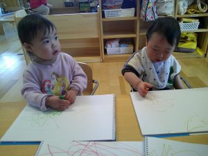 好きな色のクレヨンでぐるぐる~