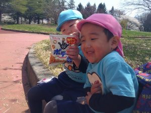 おやつの後は、ぽかぽか太陽の下で仲良く遊びました🌞