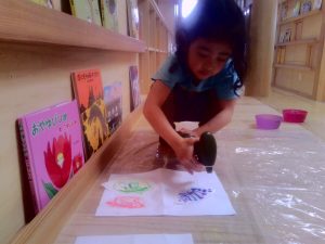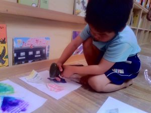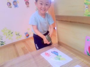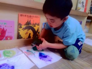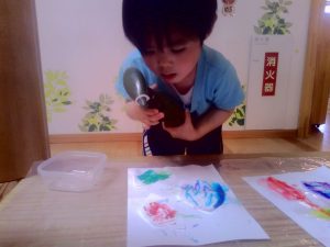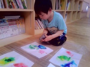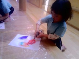 書いた絵にお水をかけると・・・色が混ざってキレイ~🌺ととっても嬉しそうでした👀