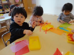 そらぐみさんもお外遊びの前に製作活動💪