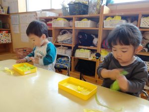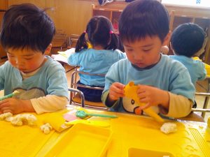 つき組さんは今日は粘土遊びに挑戦💪