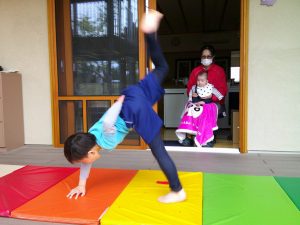 集中して取り組んでいるお友達が多く、こんなにきれいに側転ができるようになりました💮